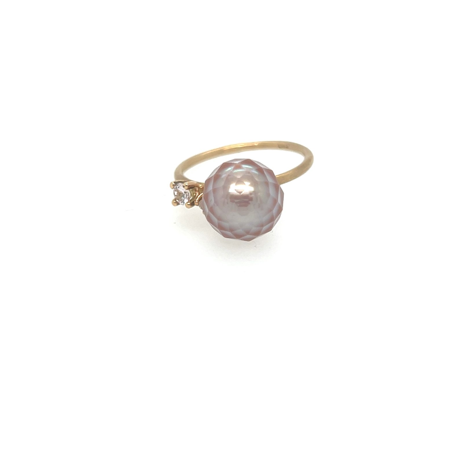 Den facetterede ferskvandsperle fanger lyset i bløde nuancer, mens de to safir tilfører dybe og ro, som en stille refleksion i vandet.